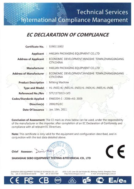 1. لقد تم تمرير آلة حلبنا CE certifictae.